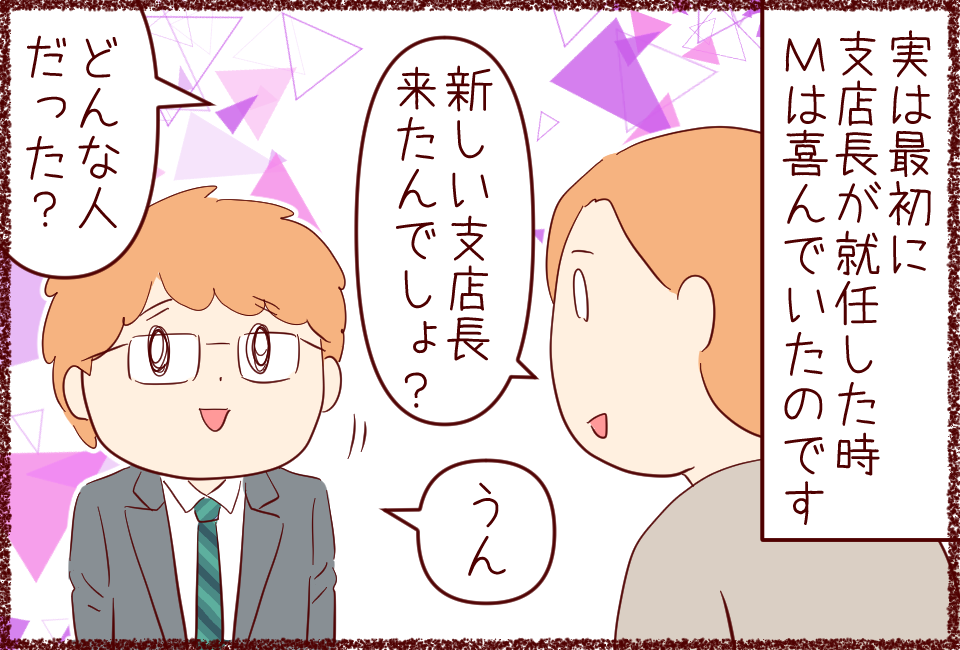 ダメ上司⑫ 上司の変貌? 2020年06月26日 (続いてます…) 5〜6年前の話外面は良いらしく、他支店の人から「そんな悪い人に見えないけど…」と疑問を持たれた事もあるそう実際、Mも直属になるまで気付きませんでした。思えば…Sさんの退職もパワハラが要因の1つだった様なのです。▼ 3年前に退職した元同僚さん「今か ... 続きを読む (続いてます…) 5〜6年前の話外面は良いらしく、他支店の人から「そんな悪い人に見えないけど…」と疑問を持たれた事もあるそう実際、Mも直属になるまで気付きませんでした。思えば…Sさんの退職もパワハラが要因の1つだった様なのです。▼ 3年前に退職した元同僚さん「今から仕事辞めてくる(2017.7)」▼ 次長が恋しいM「疲れた夫に同僚さんの気遣い」(つづく)※ 上司シリーズはコメント欄をしばらく閉じさせて頂きます。クリックして↓頂けますと嬉しいです♪ タグ :#上司#パワハラ#ストッパー