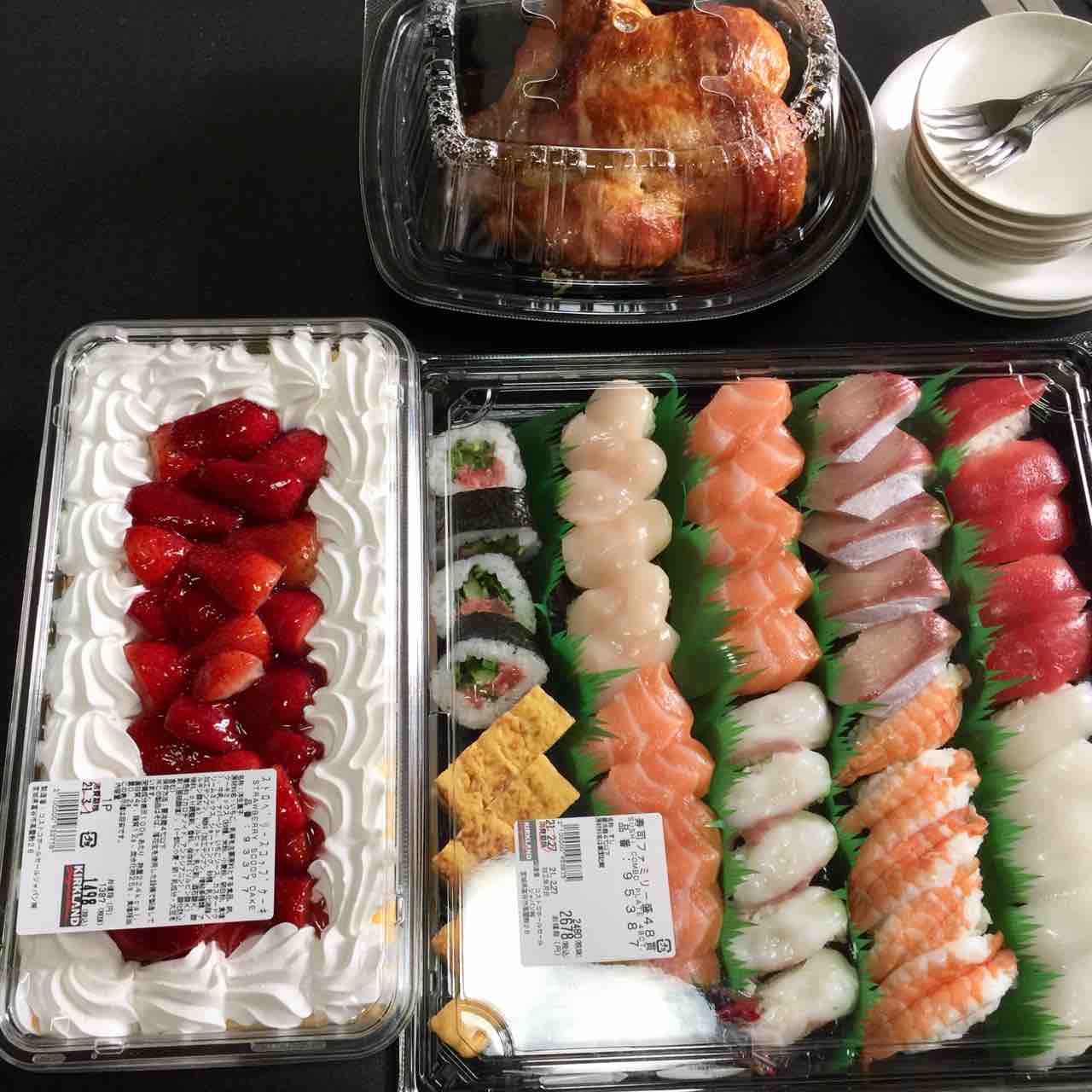 遅れて母の誕生会をしました!コストコ定番人気商品の「ロティサリーチキン」「ストロベリースコップケーキ」「寿司ファミリー盛り」をドーン!コストコ商品の巨大さに母、びっくり❀.(*´▽`*)❀.3人で食べ切れる量ではありませんが、母の喜んだ顔を見れ、私の目論見は大成 ...