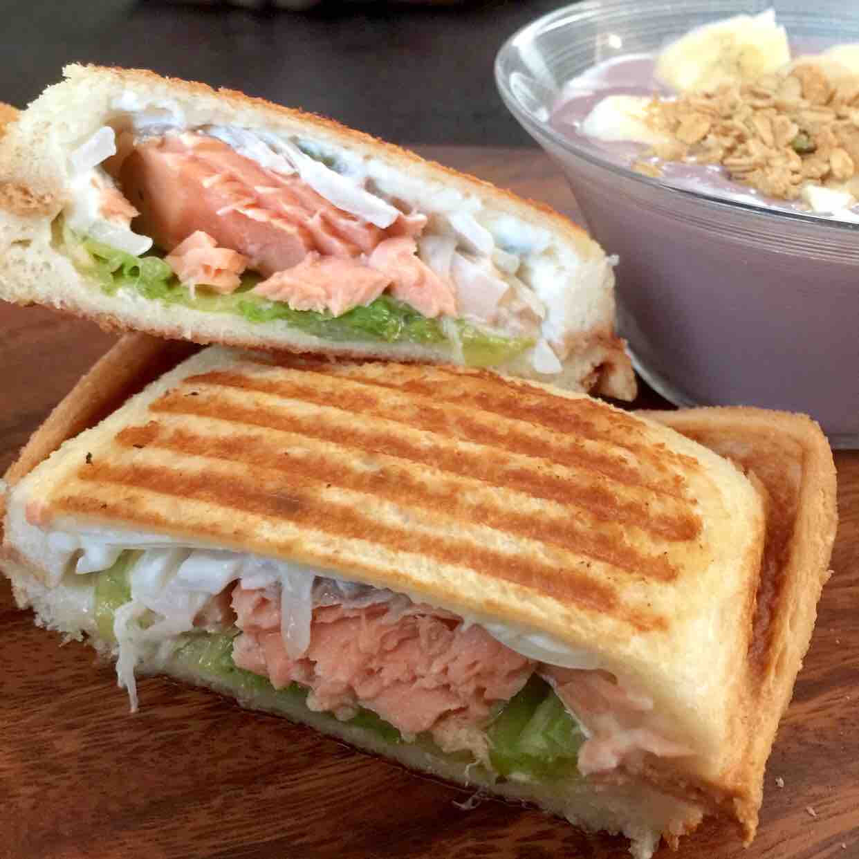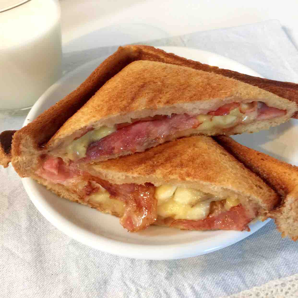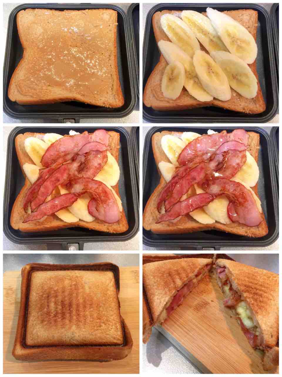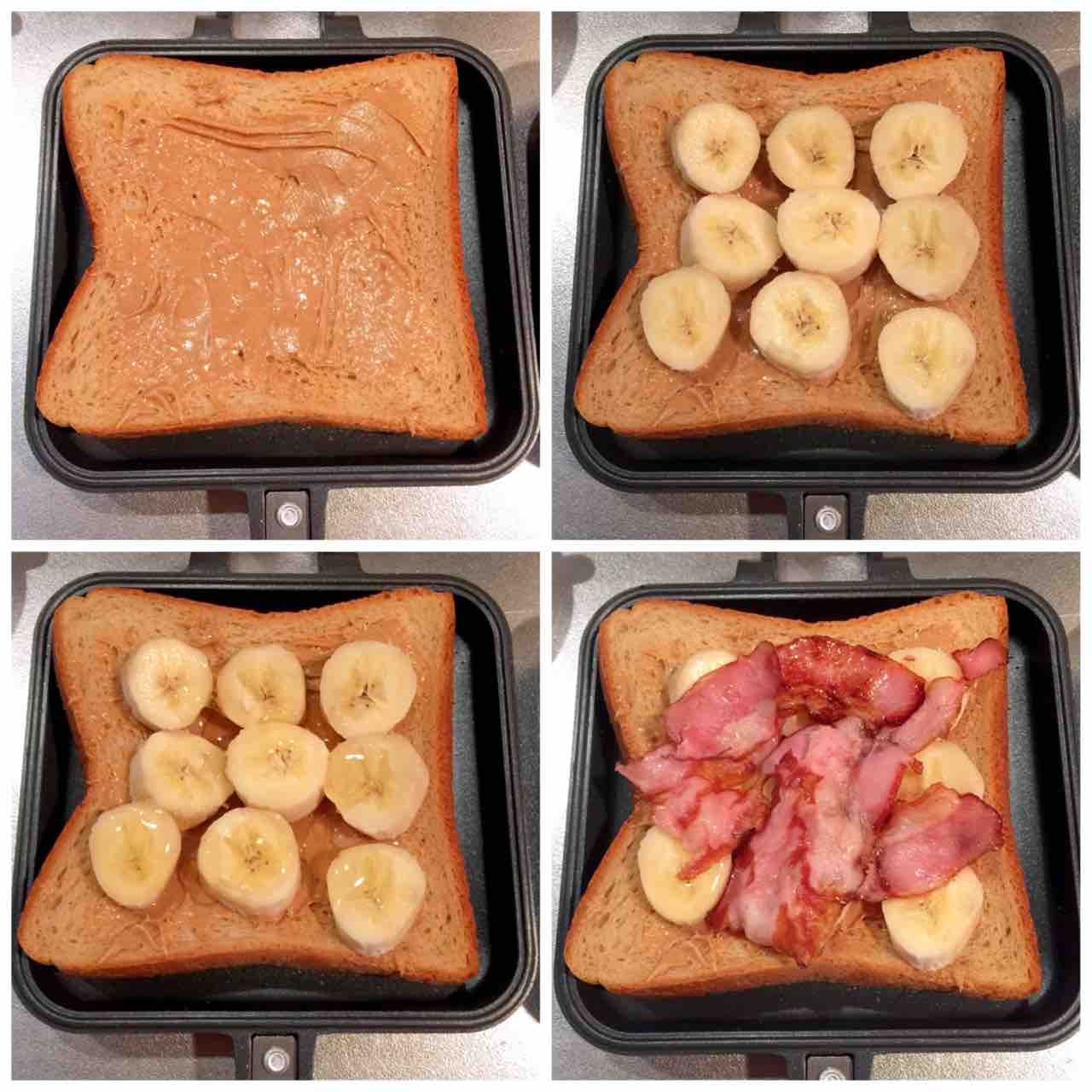 ピーナッツバター→スライスしたバナナ→カリッと焼いたベーコン→蜂蜜をサンド!