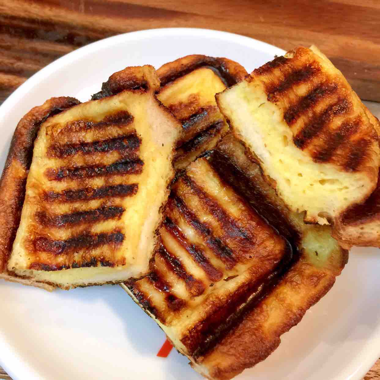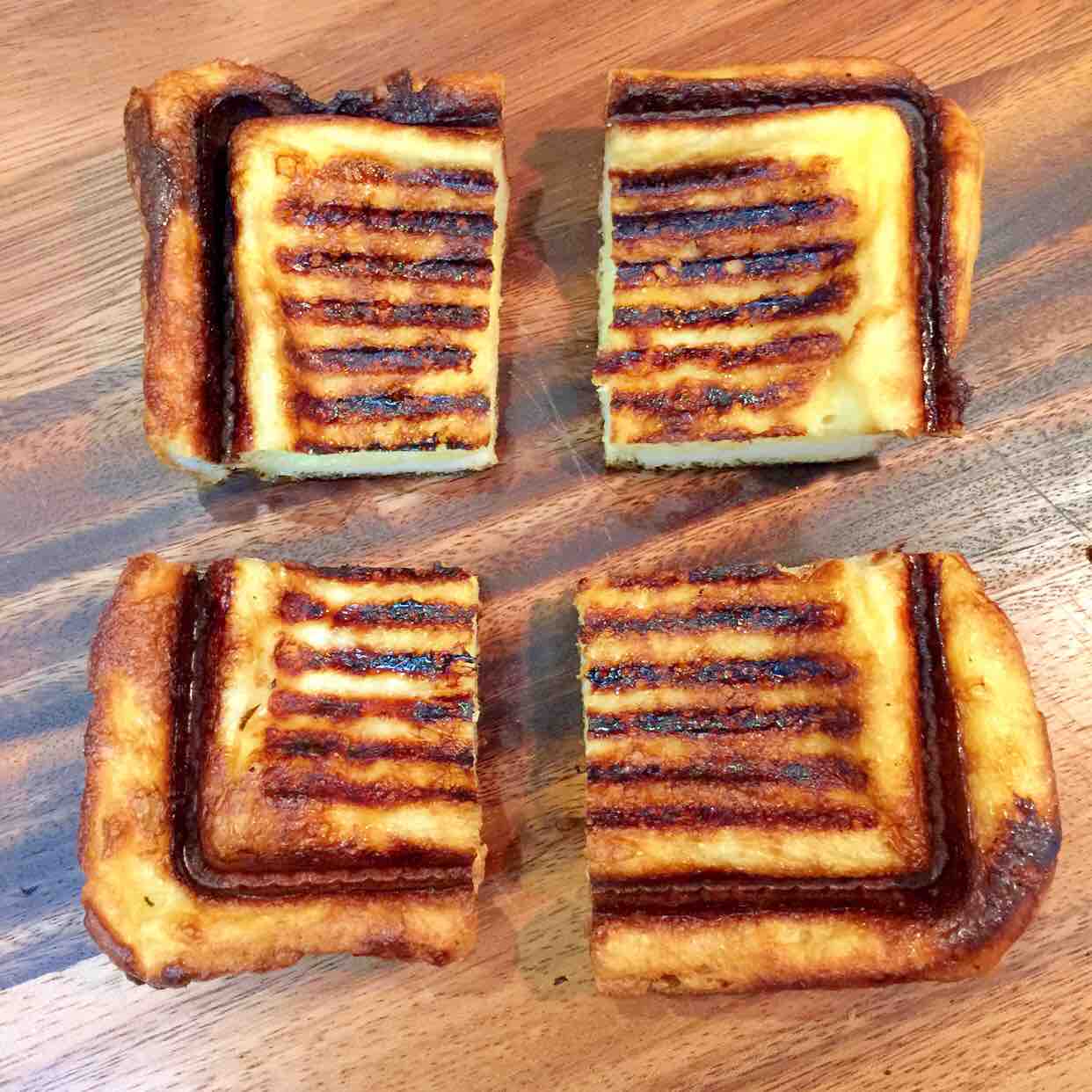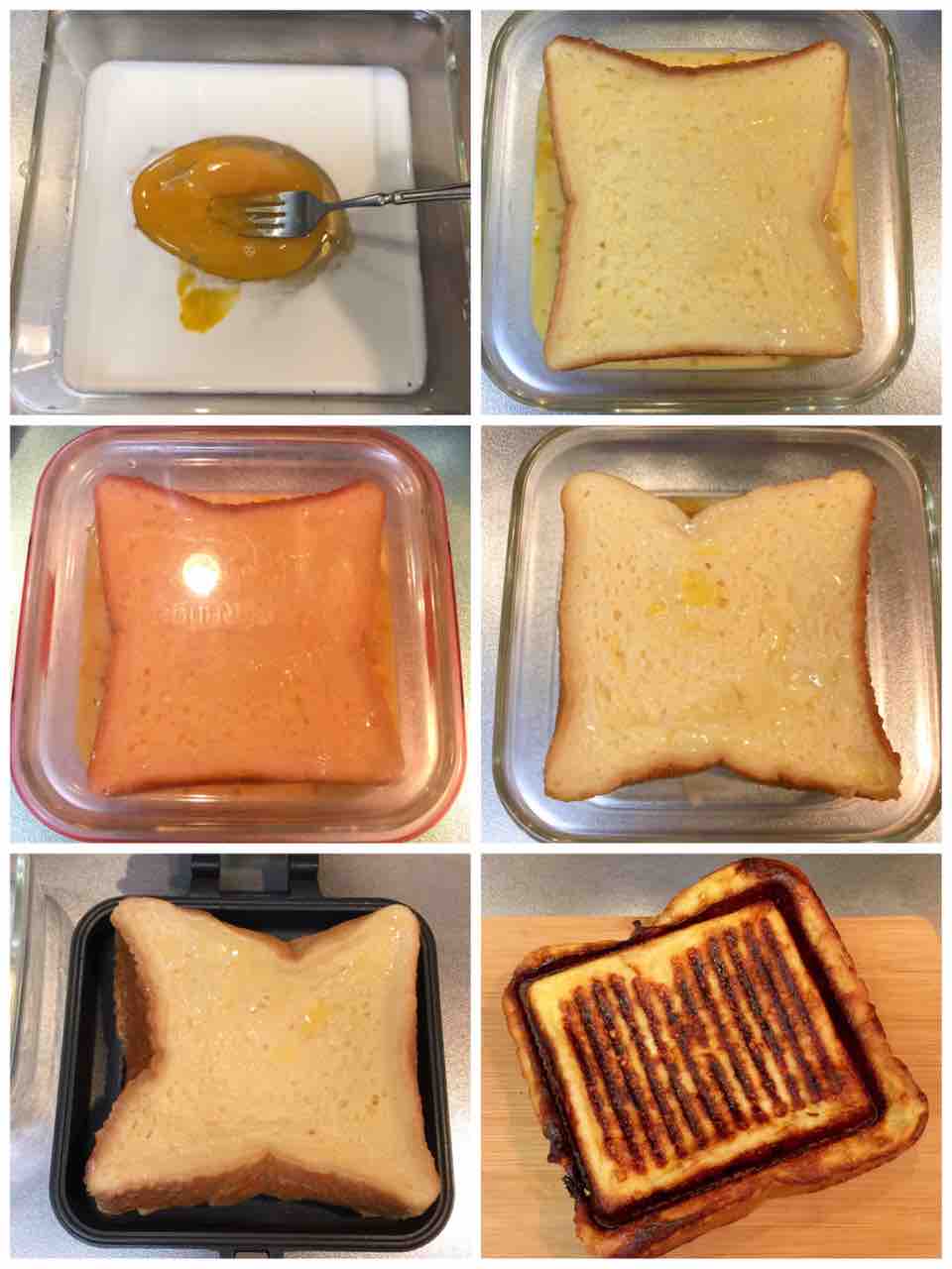 ホットサンドメーカーには油を塗り、卵液を吸ったやわやわの食パンをそっと置き、挟む!