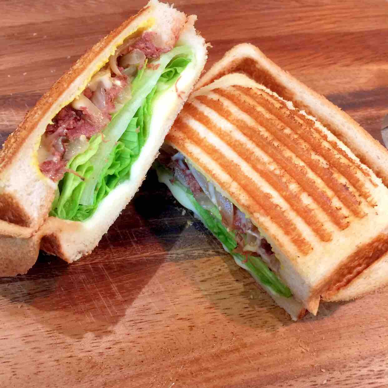 レタスがコンビーフの油っぽさを緩和してくれ、チーズでサンドする事で一体感が♪