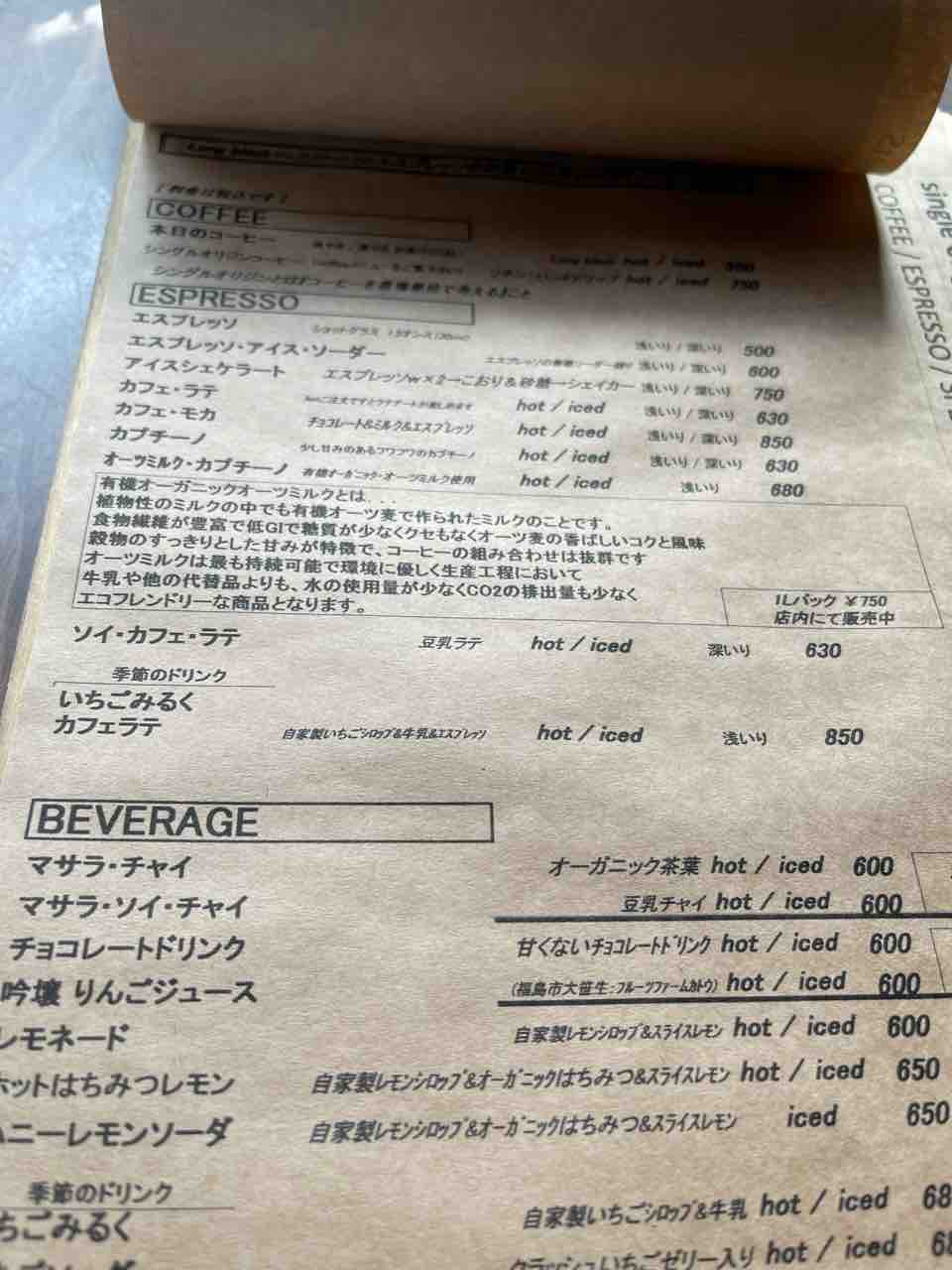 メニュー表には、スペシャルティコーヒー(シングルオリジン)も揃っていました。