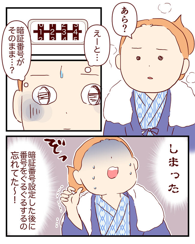 貴重品ボックスでとんでもないミス! 2023年04月06日 誕生日に温泉に行った時の話です。暗証番号をセットして鍵をクローズした後に、数字のダイヤルをランダムに回す事でロックされます🔐数字をそのままにしているという事は…そのままの番号を見た時は青ざめました。(旅館の部屋の)金庫の鍵まで🗝入れて…金庫には夫のお財布も ... 続きを読む 誕生日に温泉に行った時の話です。暗証番号をセットして鍵をクローズした後に、数字のダイヤルをランダムに回す事でロックされます🔐数字をそのままにしているという事は…そのままの番号を見た時は青ざめました。(旅館の部屋の)金庫の鍵まで🗝入れて…金庫には夫のお財布もあるし、あらゆる大事なものを無防備な状態で放置してました…運良く?紛失する事もなく、無事でした。何のために貴重品ボックスに入れたのか…。皆様もうっかりにはお気をつけください😰▼ ロッカーの使い方を聞かれたM ▼ my楽天room♪クリックして頂けますと嬉しいです♪ タグ :#ダイヤル式#貴重品ロッカー#温泉#失敗
