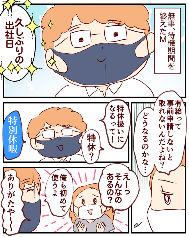 コロナ感染にまつわるエトセトラ#10 ー久しぶりの出社ー 2022年10月03日 (つづき) 遂に家庭内感染すること無く、Mは自宅待機終了ご迷惑をかけた事務所の皆さんに、手土産を用意して、いざ出勤!調子が戻りません…(つづく) ▼ my楽天room♪クリックして頂けますと嬉しいです♪ ... 続きを読む (つづき) 遂に家庭内感染すること無く、Mは自宅待機終了ご迷惑をかけた事務所の皆さんに、手土産を用意して、いざ出勤!調子が戻りません…(つづく) ▼ my楽天room♪クリックして頂けますと嬉しいです♪ タグ :#新型コロナ#家庭内別居#自宅待機#特別休暇#喘息#咳