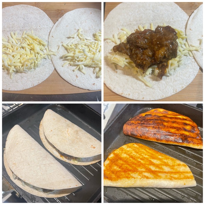 ケサディーヤ:トルティーヤにチーズを挟んで焼いたもの