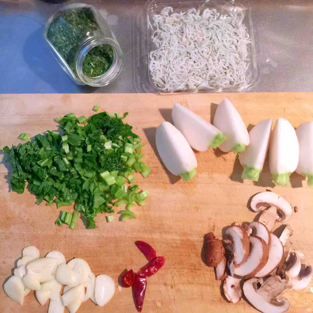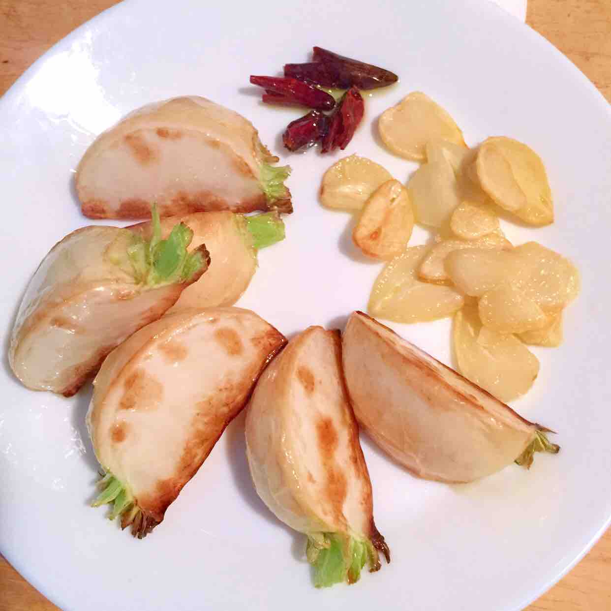 甘めな味つけなので、にんにく、唐辛子を加え、ピリッとした味を狙います。