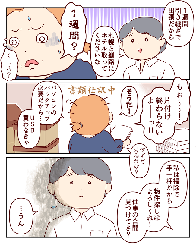 引越⑭ いよいよ待った無し 2024年08月11日 3月末に1ヶ月後(4月末日)の部屋の解約の申し出をしました。(※ 最低1ヶ月前に解約日の申告が必要)どんどんテンパる私に比べ…どこかまだ余裕のあるM仕事に意識が向いていて、引越まで気が回らない雰囲気です。出張時のホテルは私が予約を取る担当。昔からBIGLOBEのホテル比較 ... 続きを読む 3月末に1ヶ月後(4月末日)の部屋の解約の申し出をしました。(※ 最低1ヶ月前に解約日の申告が必要)どんどんテンパる私に比べ…どこかまだ余裕のあるM仕事に意識が向いていて、引越まで気が回らない雰囲気です。出張時のホテルは私が予約を取る担当。昔からBIGLOBEのホテル比較サイトを使っています。▼ ほてとる(2017.4) 札幌から釧路まで300km超、高速でも片道4時間以上…Mの引き継ぎもハードそうです。冬、大丈夫かなぁ…次は部屋探し編へ♪⭐︎ クリックして頂けますと嬉しいです♪ タグ :#出張#引越#準備