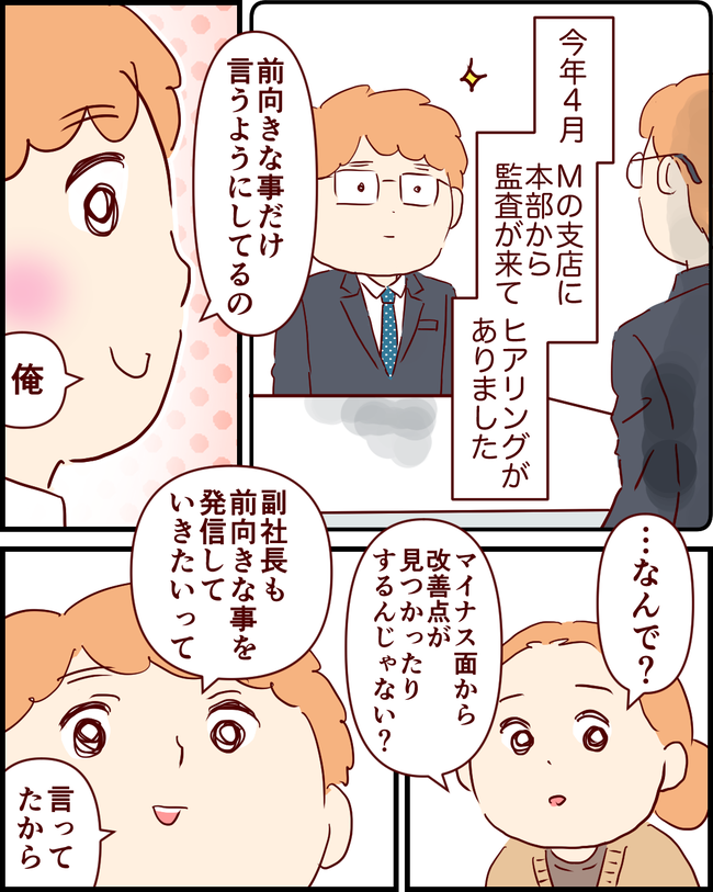 夫のメンタルヘルス(前) ー前向き前向き♪ー 2022年08月31日 久しぶりに、ダメ上司シリーズ▼ ダメ上司シリーズ実はこの2年…怒涛でした。渦中にあっては、ブログに描く気も起きず…4月の話です。(※ 「前向き♪前向き♪」は関ジャニ♾の「前向きスクリーム」の歌詞、陽気な曲です)Mの仕事環境は相変わらず人手不足ではあるものの、激変しま ... 続きを読む 久しぶりに、ダメ上司シリーズ▼ ダメ上司シリーズ実はこの2年…怒涛でした。渦中にあっては、ブログに描く気も起きず…4月の話です。(※ 「前向き♪前向き♪」は関ジャニ♾の「前向きスクリーム」の歌詞、陽気な曲です)Mの仕事環境は相変わらず人手不足ではあるものの、激変しました。端的に、結論を言うと…パワハラ上司は消え去りました!(つづく) ▼ 3年前…炎天下にエアコンが壊れた車に乗させられてたM非情な上司は自分が同乗する時しか、空いてる社用車を使わせてくれず…熱中症寸前!▼ my楽天room♪クリックして頂けますと嬉しいです♪ タグ :#面談#前向き#気持ちの変化
