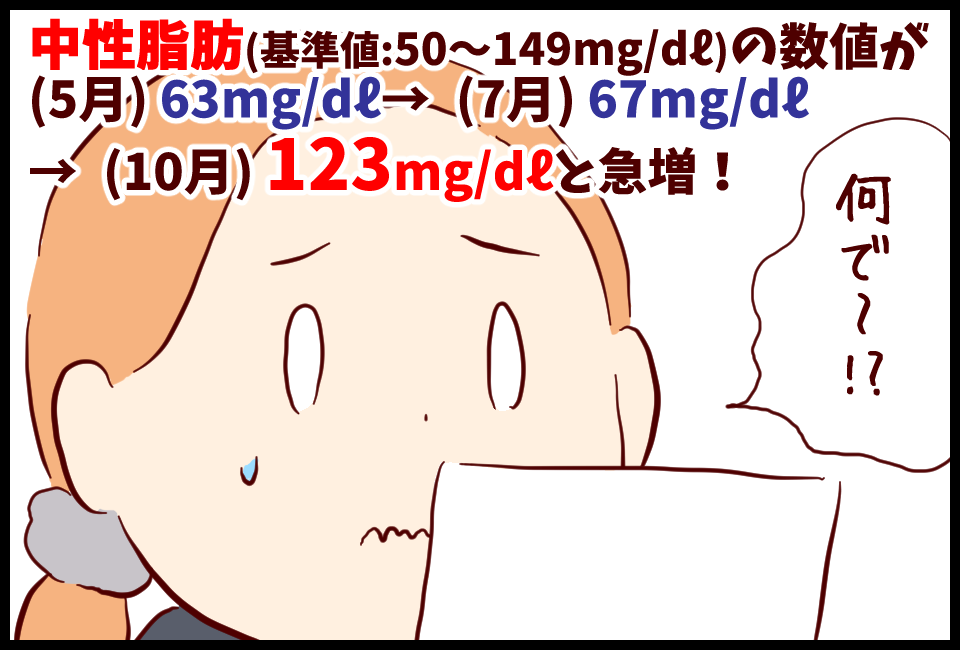 中性脂肪が何故か急増!?理由は? [LDLコレステロール治療] 2018年12月08日 (つづき)中性脂肪の数値が倍近くアップしていました。特に先生には何も注意されませんでしたが気になる…!ギー10gとMCTオイル10ccをコーヒーに入れて飲む「バターコーヒーダイエット」中です。 ↓この20gの油を検査前に摂取した事で、血中の中性脂肪が上がってしまったの ... 続きを読む (つづき)中性脂肪の数値が倍近くアップしていました。特に先生には何も注意されませんでしたが気になる…!ギー10gとMCTオイル10ccをコーヒーに入れて飲む「バターコーヒーダイエット」中です。 ↓この20gの油を検査前に摂取した事で、血中の中性脂肪が上がってしまったのでしょうか?ちなみに、中性脂肪は脂質より「糖質」の過剰摂取で急上昇するそうです。「アルコール摂取」や「過度のストレス」でも上がるとか…次回の血液検査前は、念の為「バターコーヒー」は飲まないでみるつもりです。(つづく)クリックして↓頂けますと嬉しいです♪ タグ :#中性脂肪#LDLコレステロール#上昇#原因#バターコーヒーダイエット