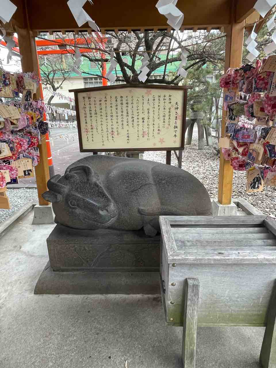 本殿前にも二体の撫で牛「優」と「勇」が!