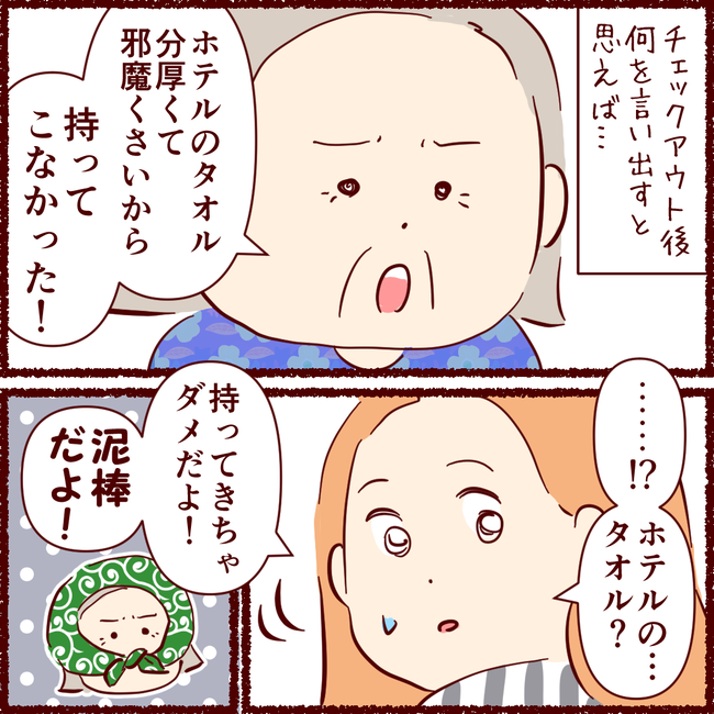 【青森番外編】母の失敗 ❸ ー危うく○○ー 2021年10月06日 (つづき) ※ 2017.9の話です屈託なく「良いんだよ!」という母に驚き…思い返せば、ホテル自体、母は殆ど泊まった事が無かったのです。昔は、母から色んな常識を教わってきたのにいつの間にか母に常識を教える歳になったんだなぁ…少し、しんみり感じましたが、母と2人きり ... 続きを読む (つづき) ※ 2017.9の話です屈託なく「良いんだよ!」という母に驚き…思い返せば、ホテル自体、母は殆ど泊まった事が無かったのです。昔は、母から色んな常識を教わってきたのにいつの間にか母に常識を教える歳になったんだなぁ…少し、しんみり感じましたが、母と2人きり、ホテルのツインも良いひと時となりました♪(おわり)ランキング参加してます♪↓ タグ :#ホテル#タオル#旅館#手ぬぐい
