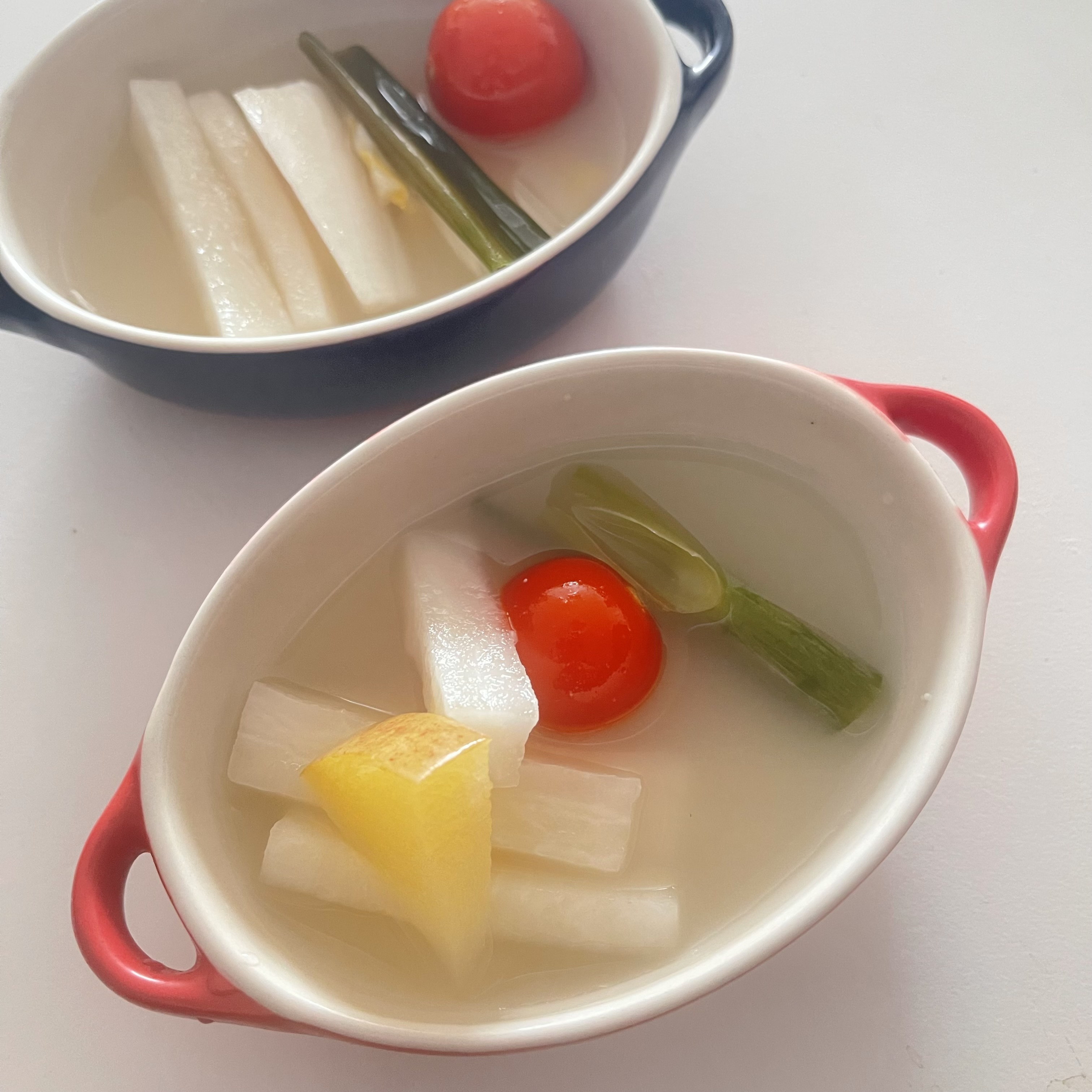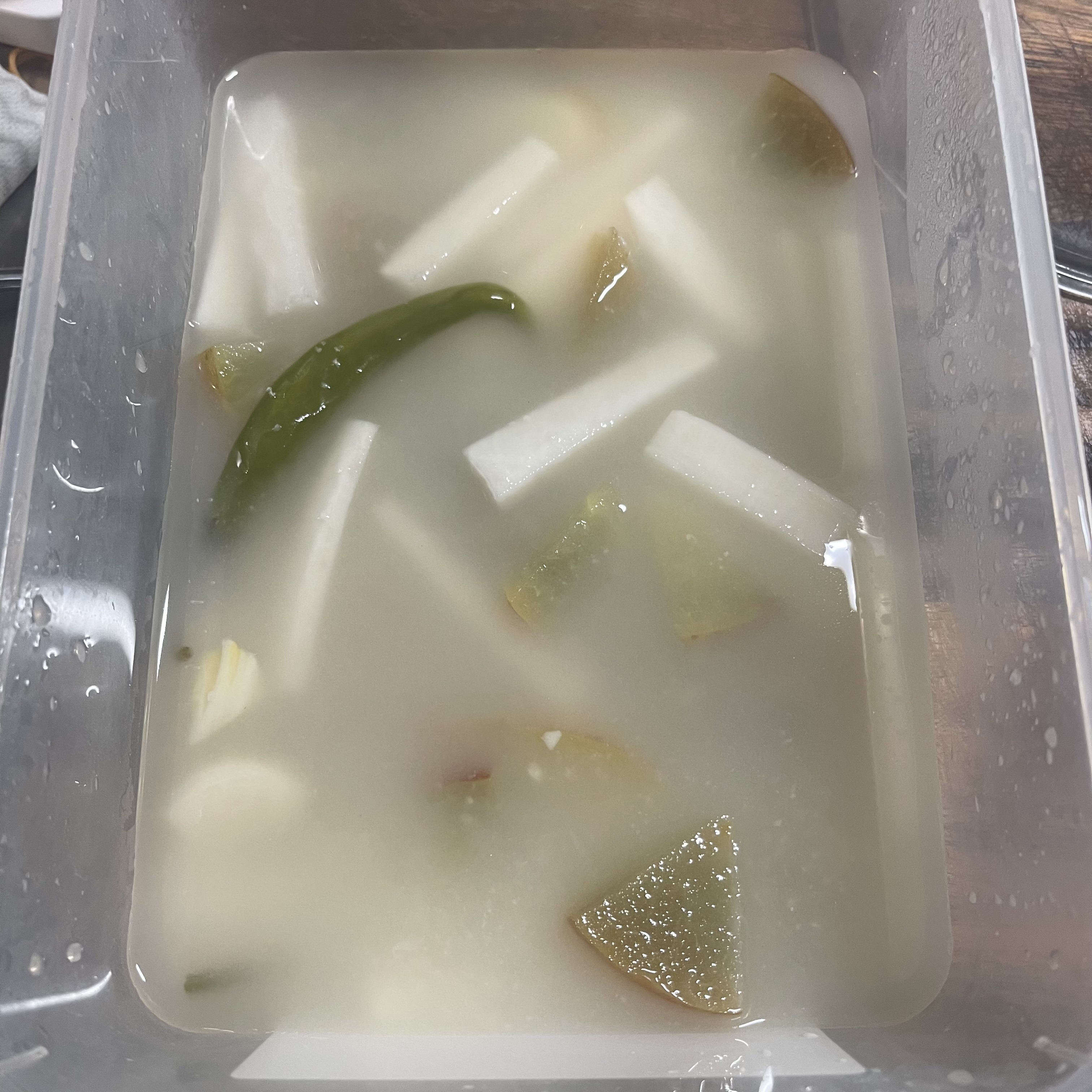 長期保存ということは、塩分濃度を高くする必要があるため、いつもの水キムチのレシピを少々変更。