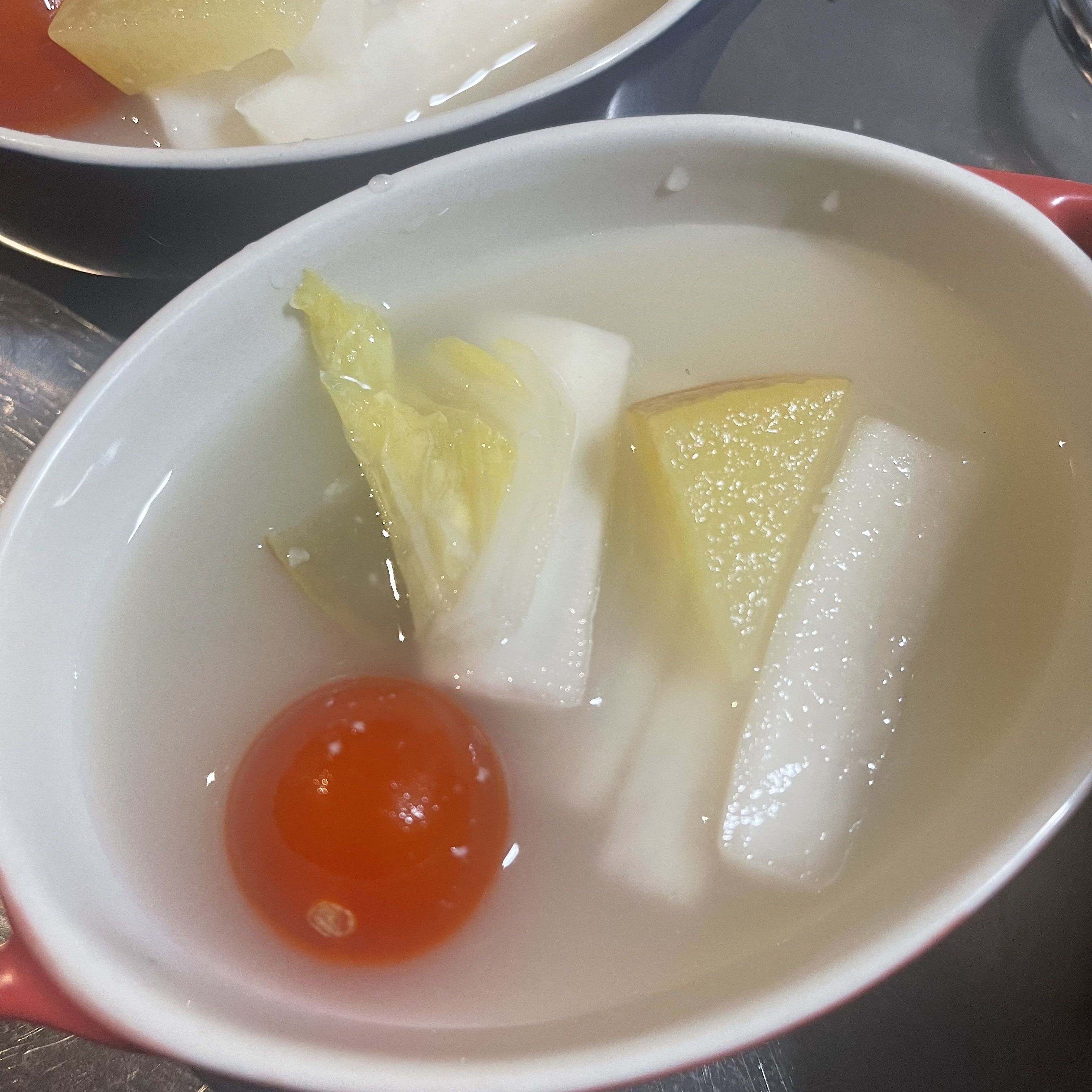 普通の水キムチは浅漬けに近いですが、トンチミは長期間発酵。