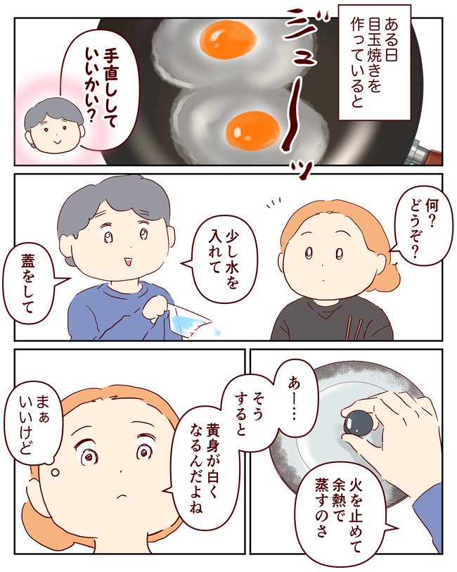 おだて目玉焼き 2025年03月04日 「目玉焼き」…好みの焼き加減ってありますね。良いように使われてしまう所…弱点でもあり愛おしくもあります(笑)▼ おだてに弱い (2017.3) Mが焼いてくれた目玉焼き。ほんのり白い半熟具合が最高でした♪ちなみに、目玉焼きに何をかけるか…塩胡椒、醤油、ウスターソース、 ... 続きを読む 「目玉焼き」…好みの焼き加減ってありますね。良いように使われてしまう所…弱点でもあり愛おしくもあります(笑)▼ おだてに弱い (2017.3) Mが焼いてくれた目玉焼き。ほんのり白い半熟具合が最高でした♪ちなみに、目玉焼きに何をかけるか…塩胡椒、醤油、ウスターソース、ケチャップ…うちは醤油派です🍳⭐︎ クリックして頂けますと嬉しいです♪ タグ :#目玉焼き#焼き方