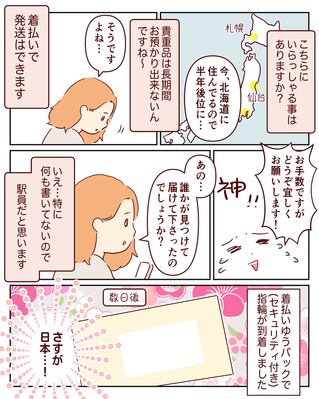 そして、手元に戻ってきた指輪を眺め、改めて日本の治安の良さを実感しました。