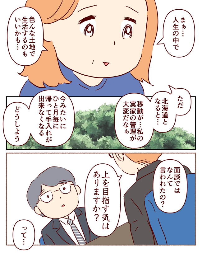 引越① 人事の春 2024年07月18日 さて『転勤話』続きを描いていこうと思います。 話は少し前に戻り… (つづく)⭐︎ クリックして頂けますと嬉しいです♪ ... 続きを読む さて『転勤話』続きを描いていこうと思います。 話は少し前に戻り… (つづく)⭐︎ クリックして頂けますと嬉しいです♪ タグ :#人事異動#転勤#打診#内示